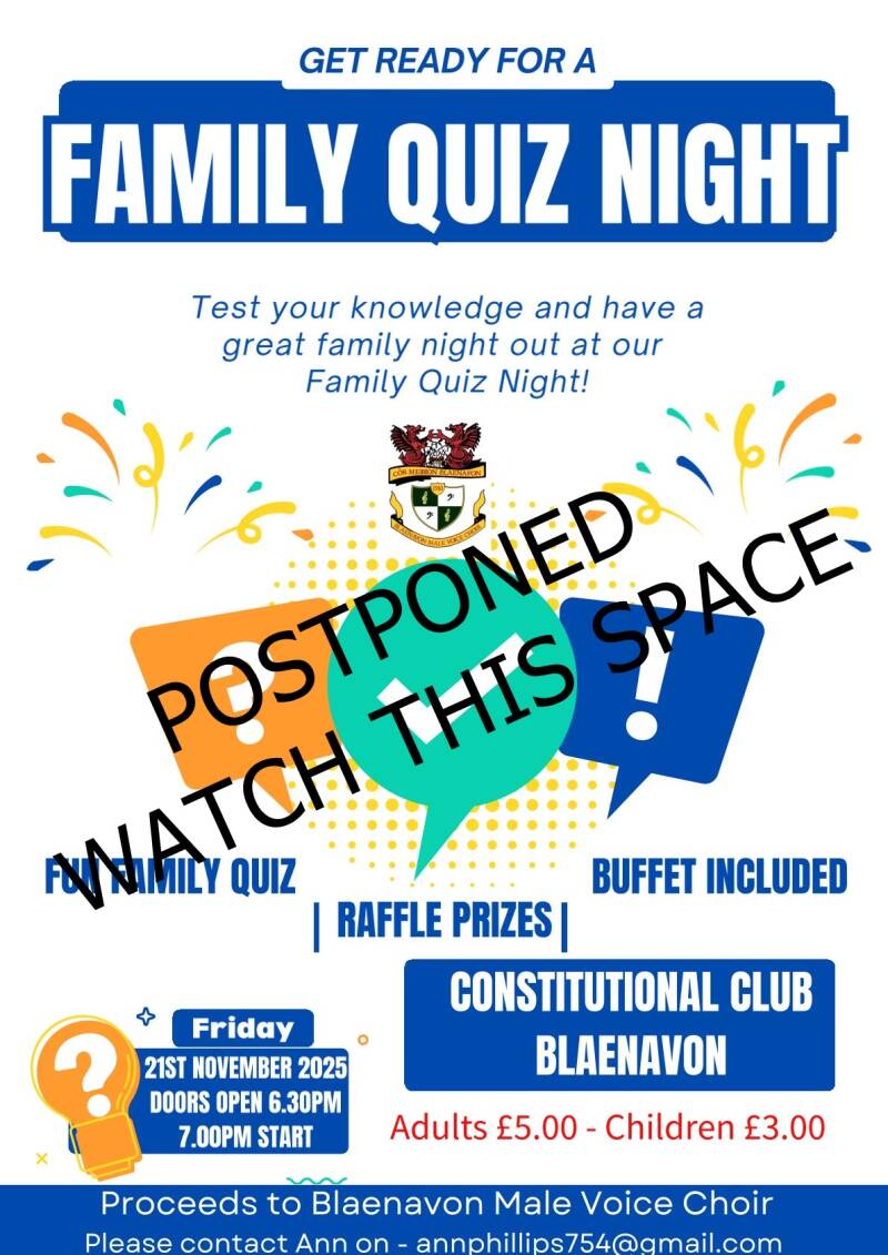 When we are hosting another quiz after our very successful one last year at The Constitutional Club in Blaenavon. Details to follow on tickets.
